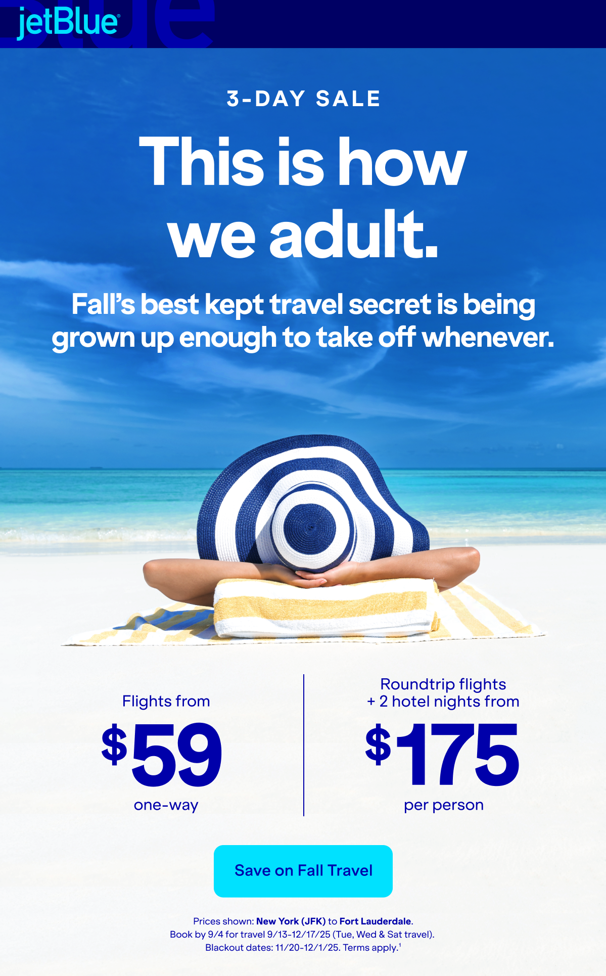 Senior digital designer at JetBlue specializing in email, web, and social. I lead high-volume, fast-paced campaigns while refining and evolving the JetBlue brand across digital touchpoints, balancing creativity with performance to drive engagement, conversion, and consistency.
